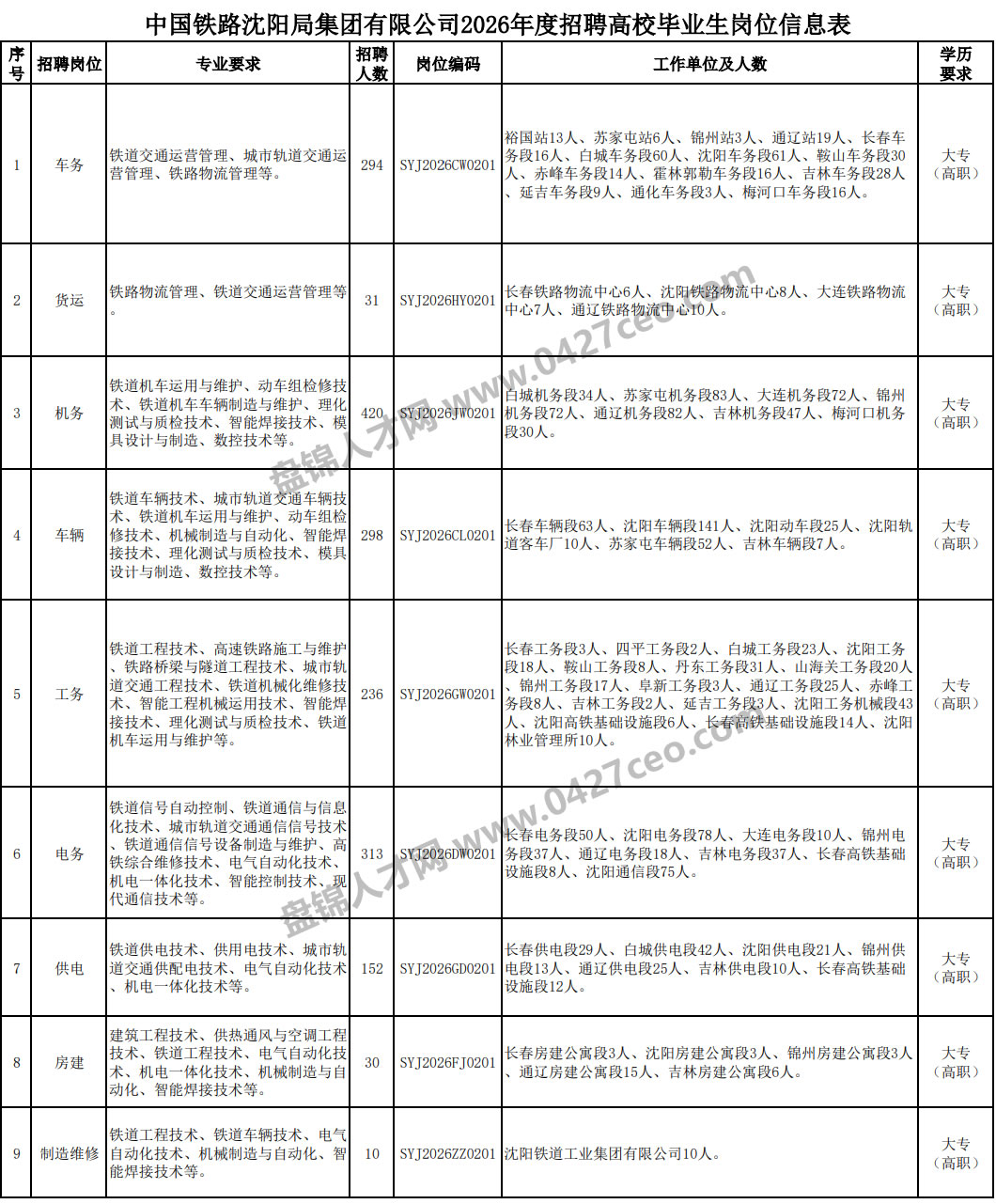 附件:中国铁路沈阳局集团有限公司2026年度招聘高校毕业生岗位信息表.pdf (64.29 K)
